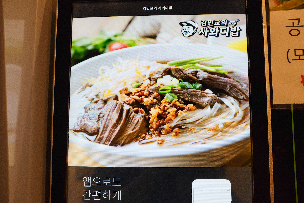 키오스크 옆의 냉장고에 음식별 사진과 제목이 있어서 도움을 받을 수 있습니다.