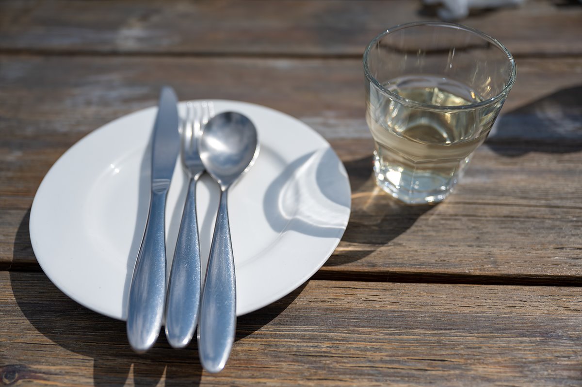 음식을 주문하니 간단하게 식기와 물을 가져다 준다.