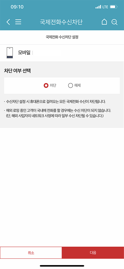 휴대폰으로 걸려오는 국제전화를 차단하는 서비스라고 한다.