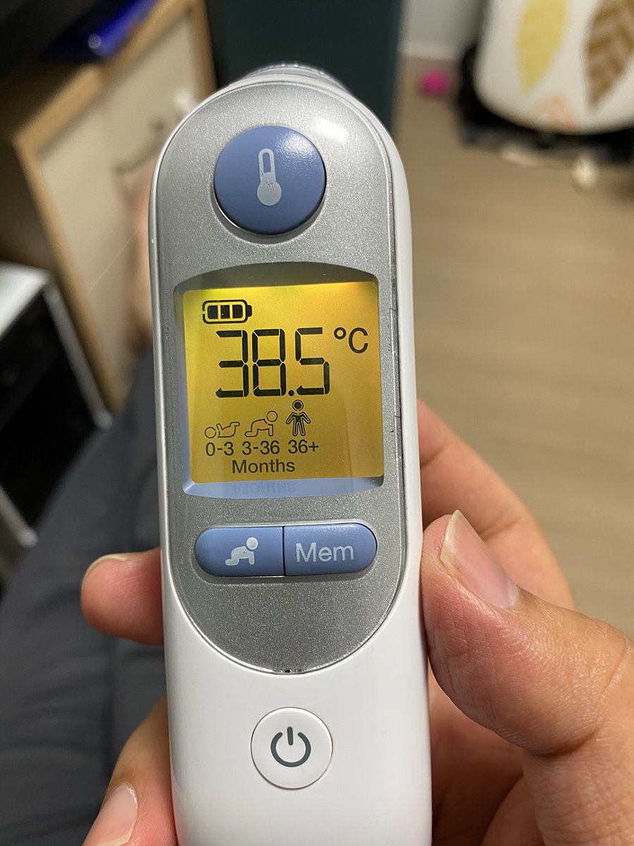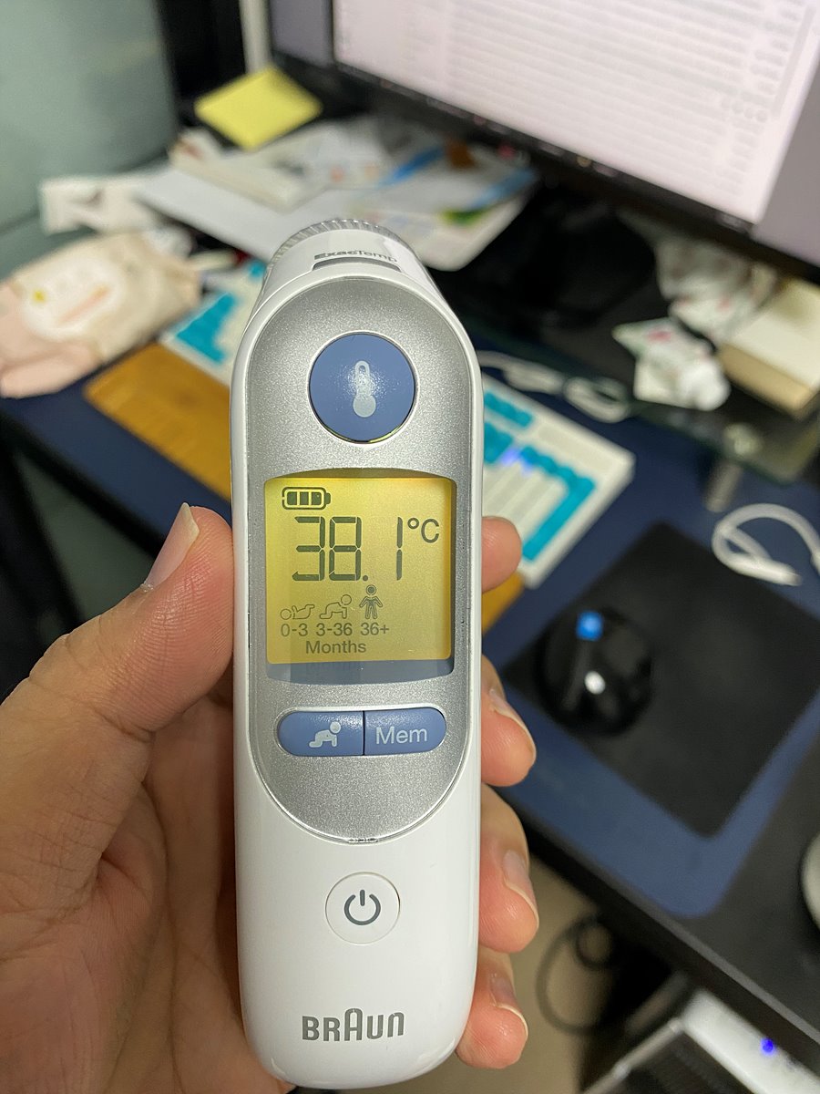 결국 열을 다시 측정했더니 38℃를 초과했다.