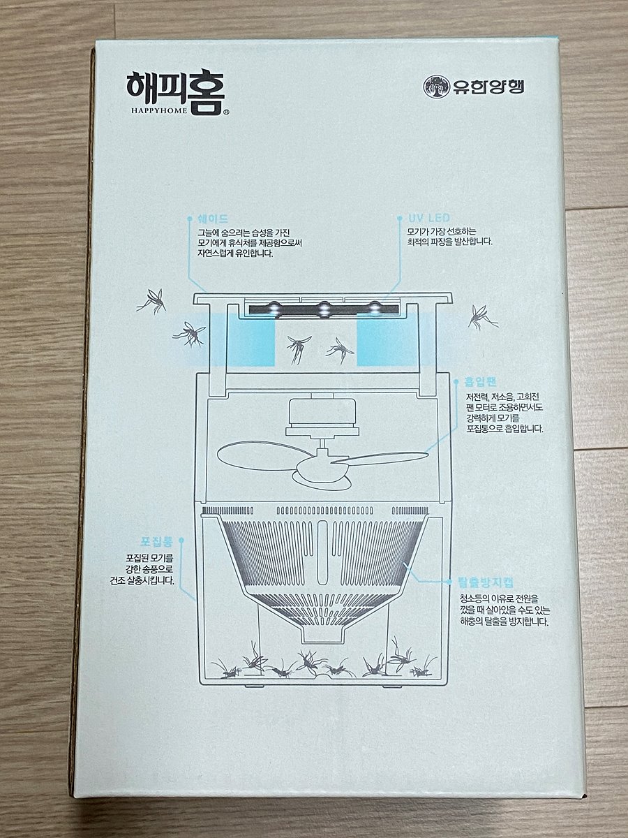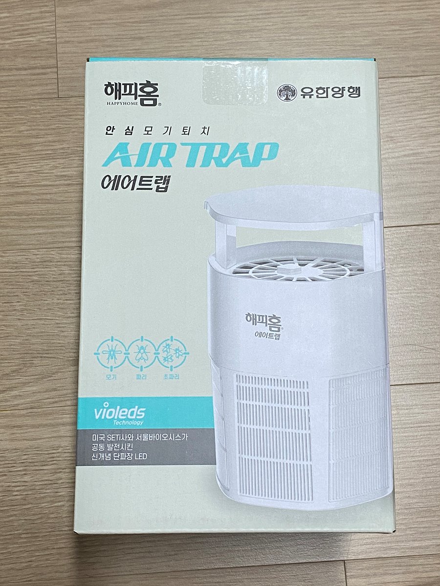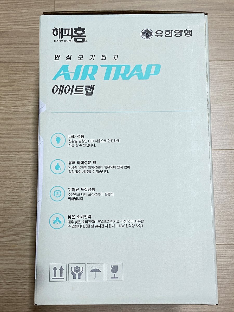 유한양행에서 제작한 해피홈 에어트랩 모기포충기다.