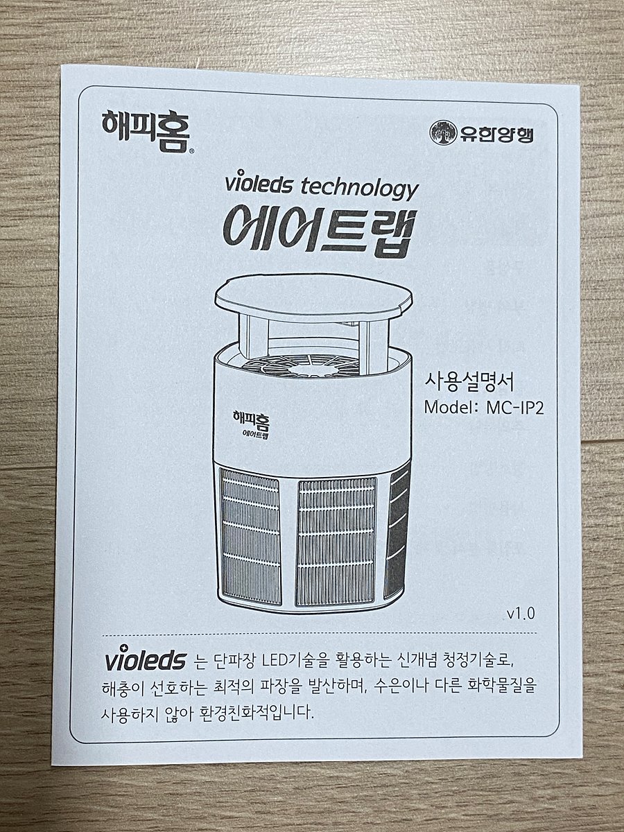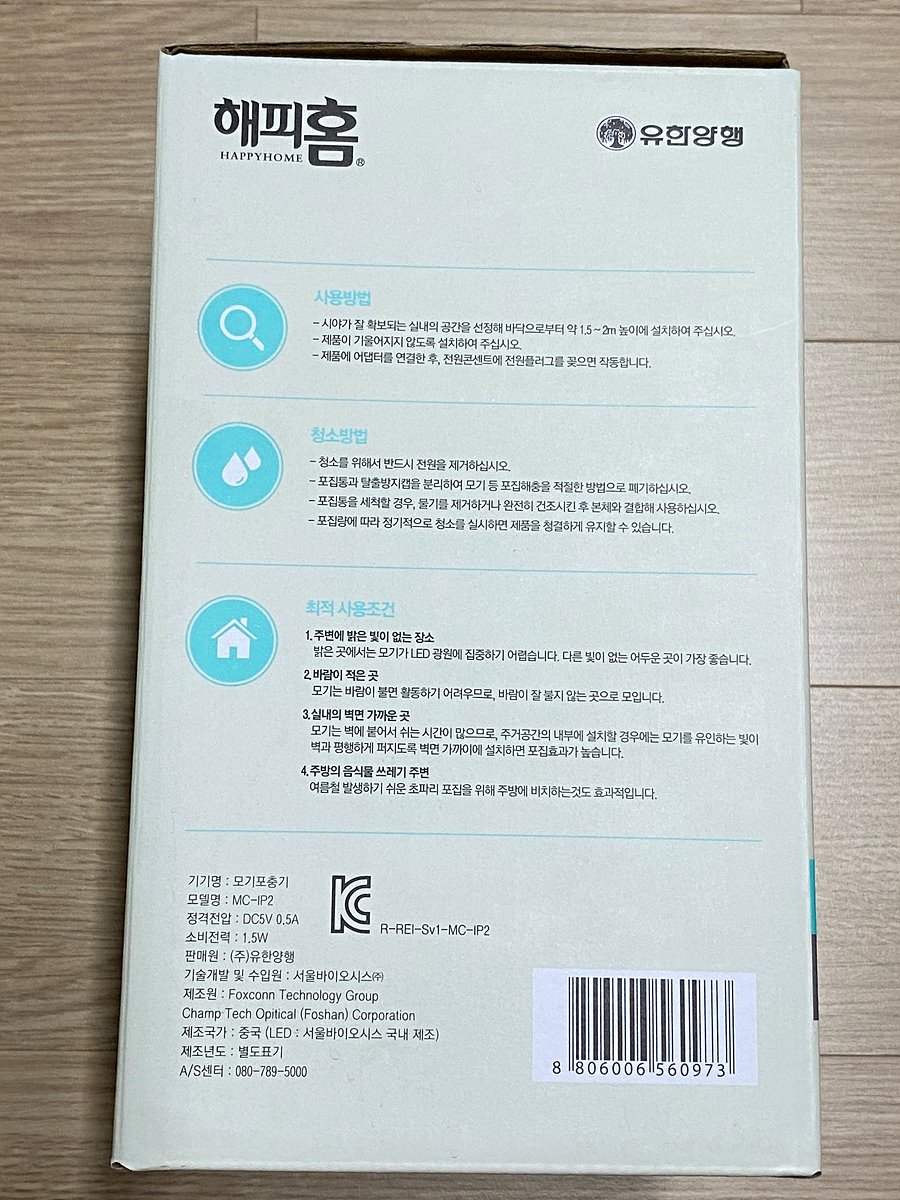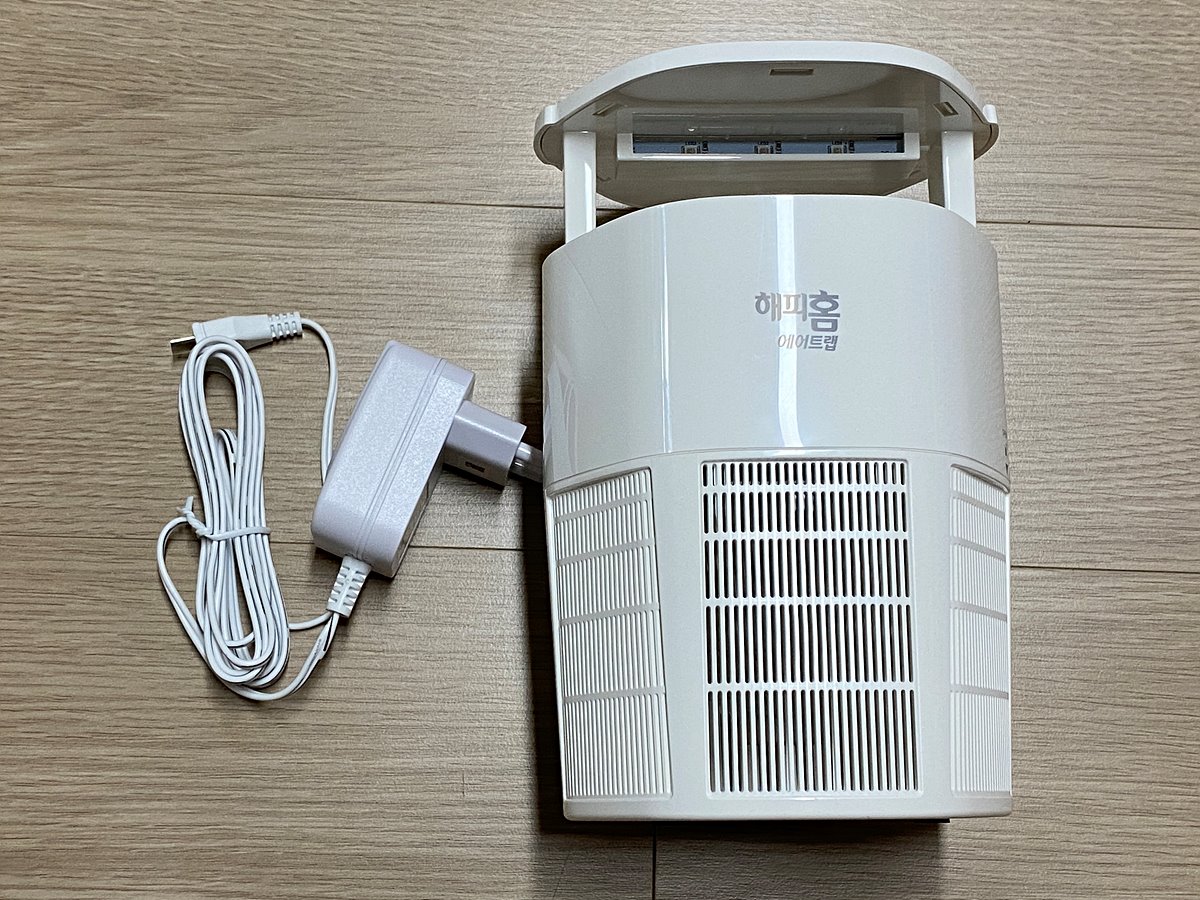 유한양행에서 제작한 해피홈 에어트랩 모기포충기다.