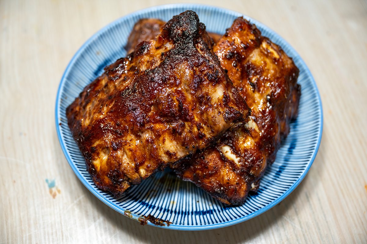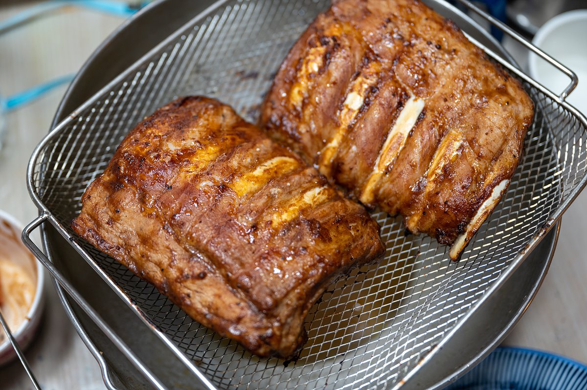 앞 뒤로 뒤집어 가며 두 번 정도 구워낸 폭립의 모습이다.