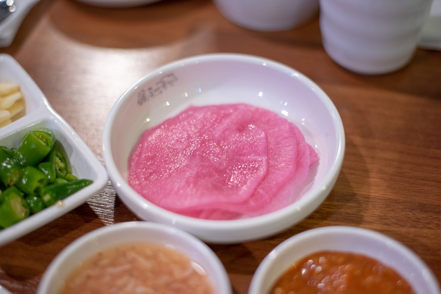 무쌈은 백년초에 절인 건지, 색깔이 곱더군요.