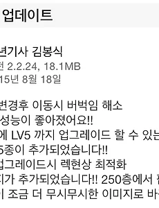 728x90 반응형 도트 그래픽1 중년기사 김봉식 : iOS 무기 업데이트 MAF 게임의 [중년기사 김봉식]의 새로운 업데이트가 이루어졌습니다.언제나 그렇지만... 안드로이드에서는 이미 진행된 업데이트인데요... 봉식이의 무기 5가지가 추가되고, 무기의 레벨을 한 번에 올릴 수 있으며,던전 250층에 도달하면 [중급자 패키지] 구매 알림이 뜨는 업데이트네요. 앱스토어 업데이트 탭에 중년기사 김봉식의 새로운 업데이트 알림이 등장했습니다.뭐.. 여러 가지 업데이트 사항이 있는데... 중요한 건, 무기 자판기의 성능이 좋아져서 한 번에 무기 레벨을 5까지 올릴 수 있고,신규 무기 5종이 추가된 거지요. 가장 눈에 띄는 것은.. 무기 탭을 눌렀을 때, 돈만 있다면 무기의 레벨을 1에서 5로 바로 업그레이드 할 수 있도록 변경되었습니다.이제 여러번 버튼을 누를 필요가 없어졌네요. 돈만 .. 2015. 8. 20. 이전 1 다음 728x90 반응형 LIST