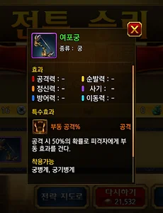 삼국지 조조전 온라인 : 연의에서 여포궁 얻는 법 삼국지 조조전 온라인은 중국 대륙을 통일하는 전략 모드도 있지만,스토리 모드인 연의가 있습니다. 연의를 플레이하면서 특정 조건을 충족하면 보물을 얻을 수 있는데요,이번에 소개할 보물은 [연의 : 조조전]의 1장, [의적]에서 얻을 수 있는 [여포궁]입니다.원작에서도 이동 불가 옵션으로 궁병이나 궁기병에게 좋은 템이었죠. 여포궁을 얻을 수 있는 [복양전투 3 - 의적] 시나리오 여포궁을 얻기 위해서는 여포와 그의 친위대를 복양성 바깥으로 유인해야 합니다. 몸빵이 강한 친구들로 막아가며 적들을 잘 유인합시다. 적들을 복양성 밖으로 유인해내면 부호가 그 동안 여포 밑에서 사느라 힘들었다며 성문을 닫아버립니다.그리고는 싸움이 끝날 때까지 숨어버리죠. 여포군은 혼란에 빠지고, 남은 일이라곤 모든 병력을 몰아 혼란.. 2016. 11. 10.